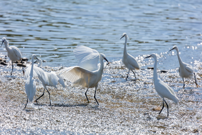 遡上する鮎の稚魚を捕食するコサギ / 2025年春・山口県岩国市牛野谷町